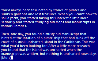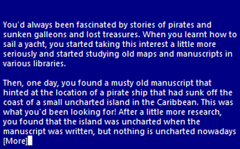 | Tags | inform-6, Pirates, punyinform, Retro, text-adventure, Text based |