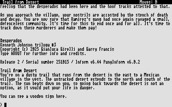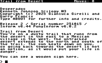 | Tags | inform-6, punyinform, Retro, text-adventure, Text based, Western |