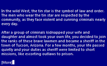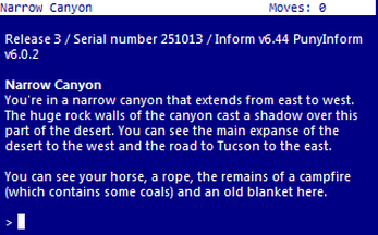| Tags | inform-6, punyinform, Retro, text-adventure, Text based, Western |